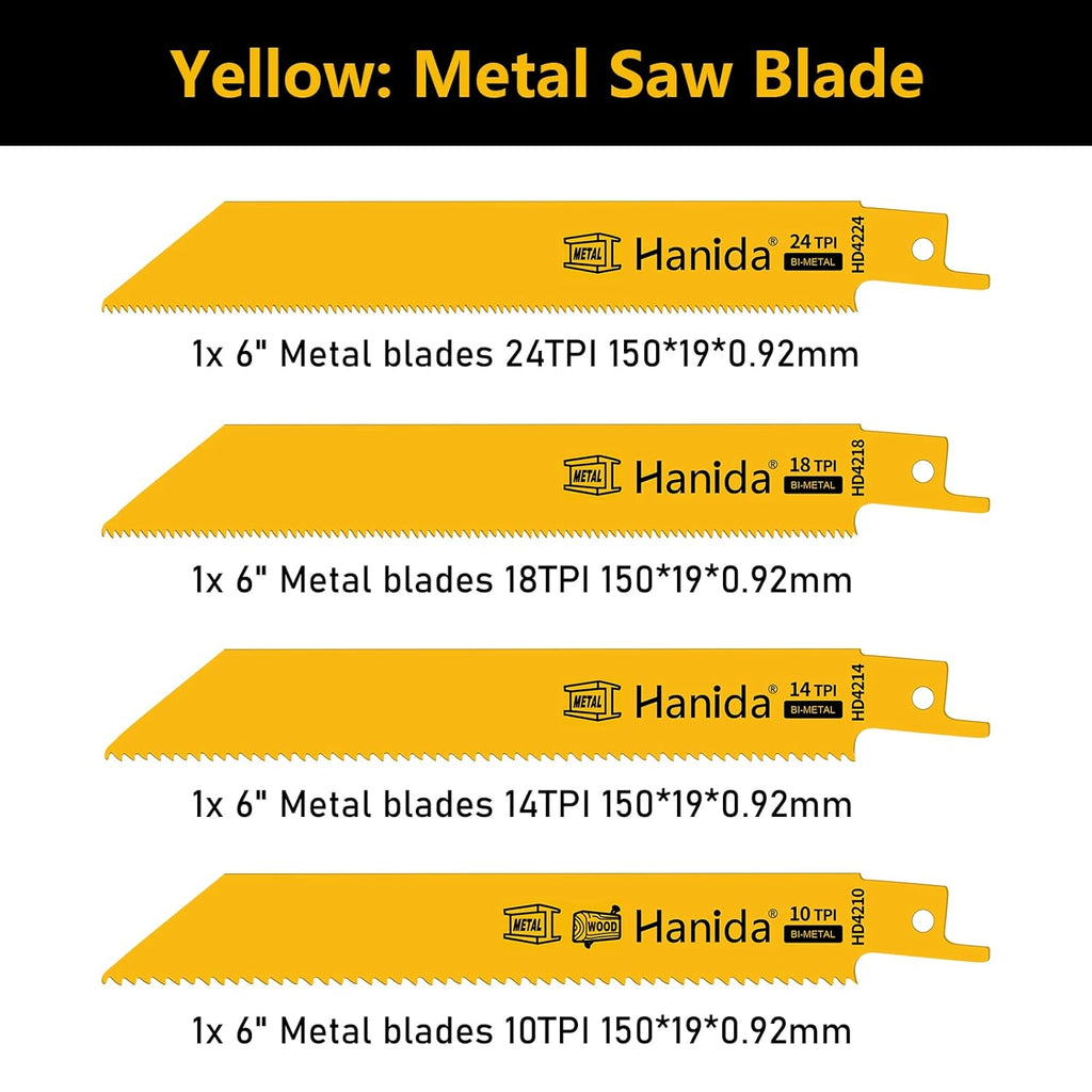 - ★ 【 Reciprocating Saw Blade Dismantle Kit】 - Hanida reciprocating saw blades are suitable for most brands of reciprocating saw tools, such as Milwaukee serrated saws, DeWalt, Bosch, Makita, Black&Decker, Porter Cable, Skil, Ryobi, Hitachi, Metabo, etc.