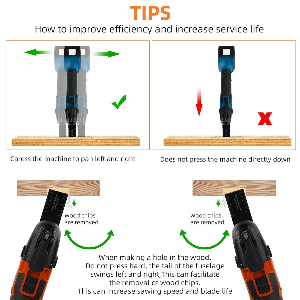 • ★【Special Design & Precision Cutting】Equipped with built-in length markings in both inches and centimeters, our saw blades ensure accurate cuts with ease and efficiency. 2 types of specially designed precision saw blades have a longer wavy tooth, specially designed for faster, cleaner cuts in wood and plastic.